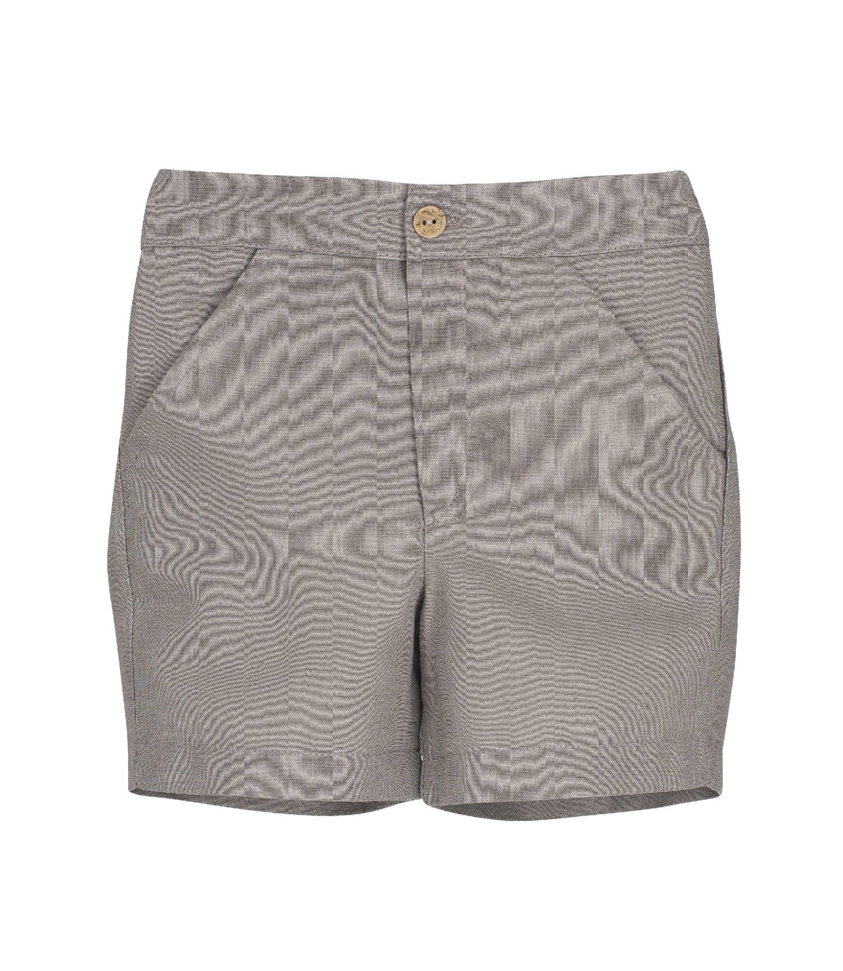 Pantalón corto : un diseño tipo bermuda de corte recto , con un acabado que sugiere comodidad y elegancia.