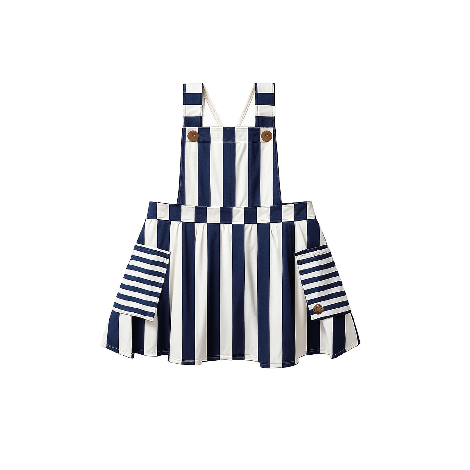 Precioso pichi de rayas azul marino y camisa con detalle bordado en el cuello volante algodón.