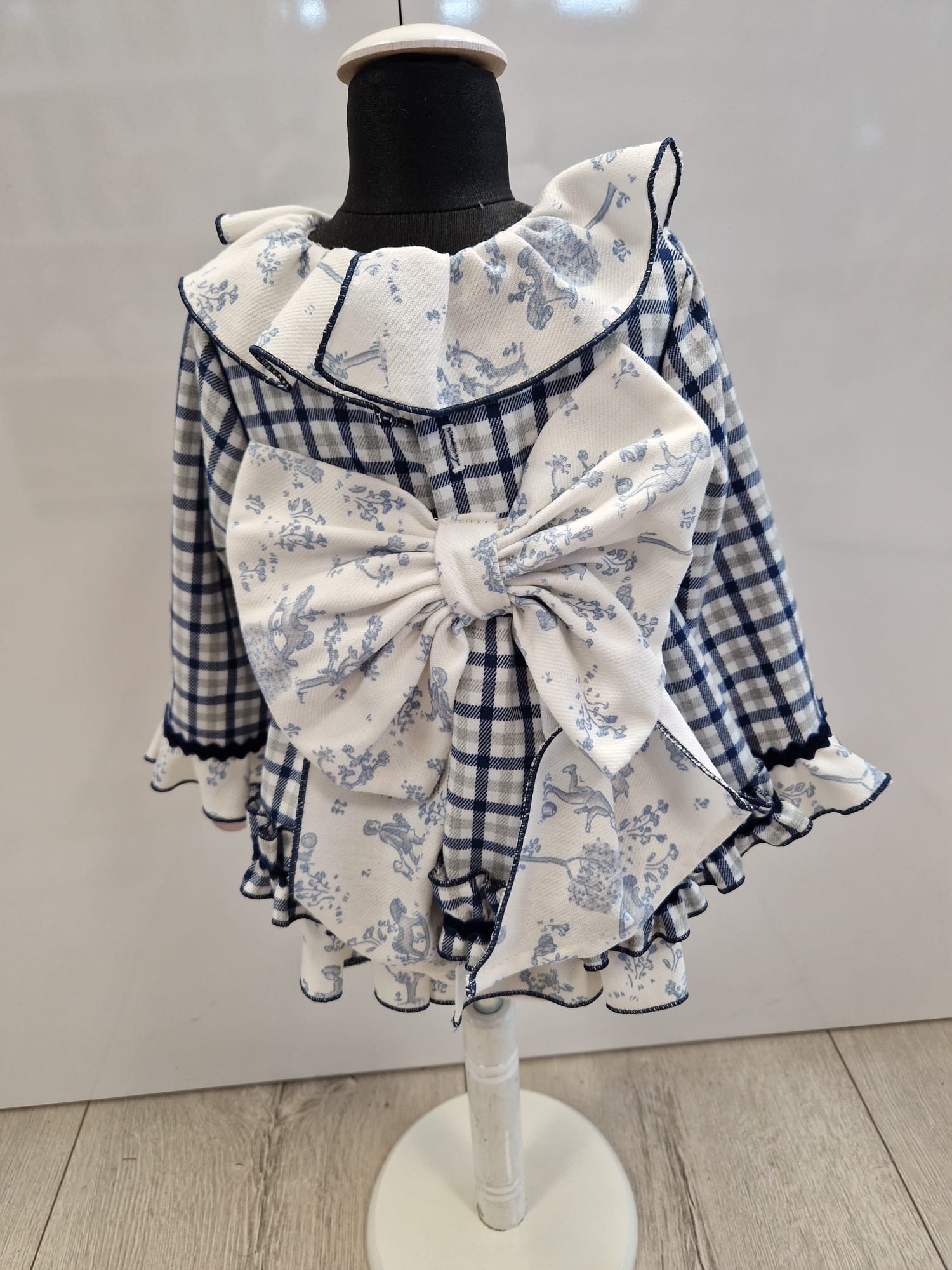 Detalles delicados: Confecciono con un suave tejido de algodón combinado con 40% poliéster , incluye un cuello de volante blanco y puños a juego con ribetes en contraste para un toque sofisticado . El punto mas fuerte es la parte trasera con un precioso lazo grande.
