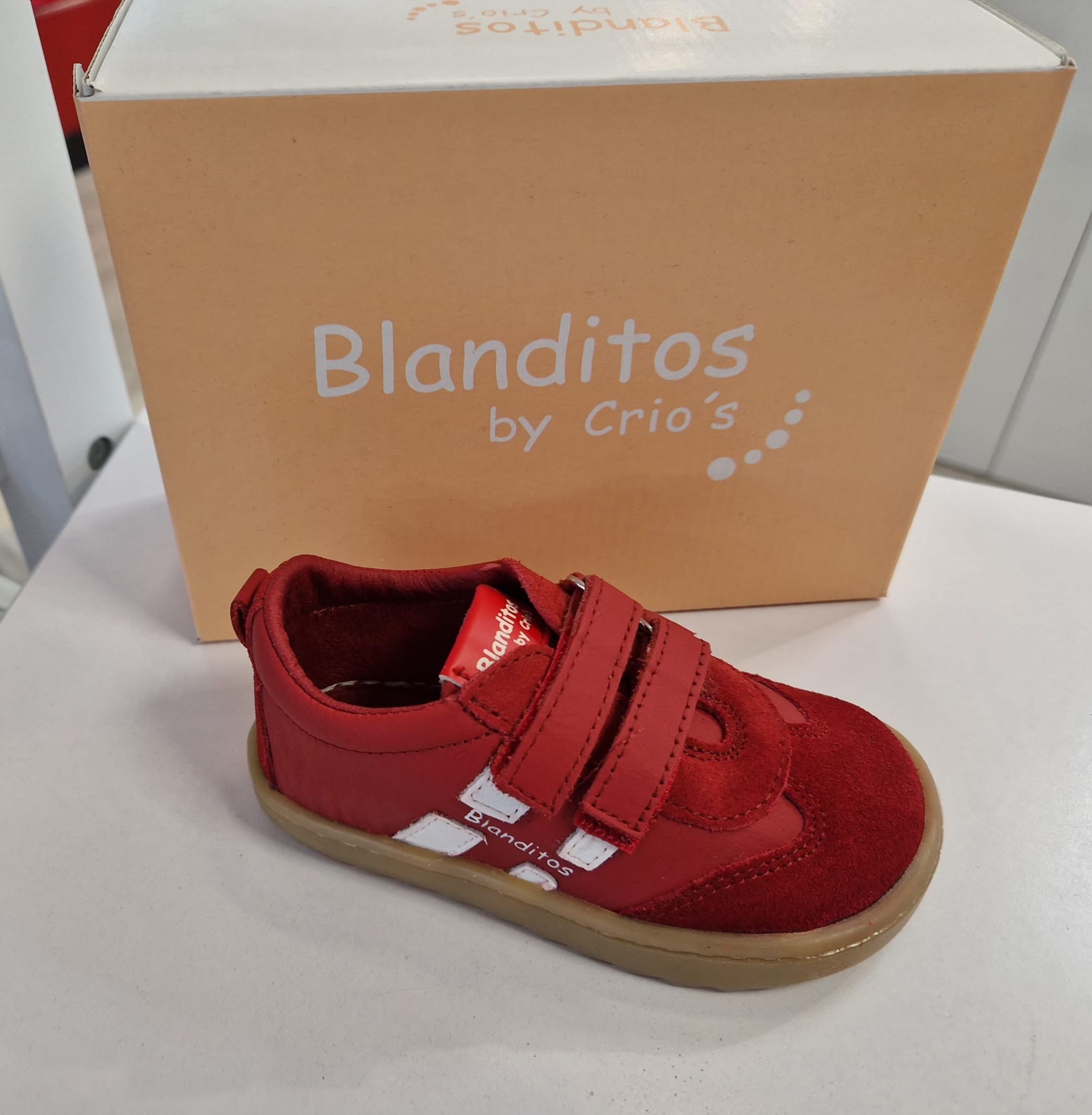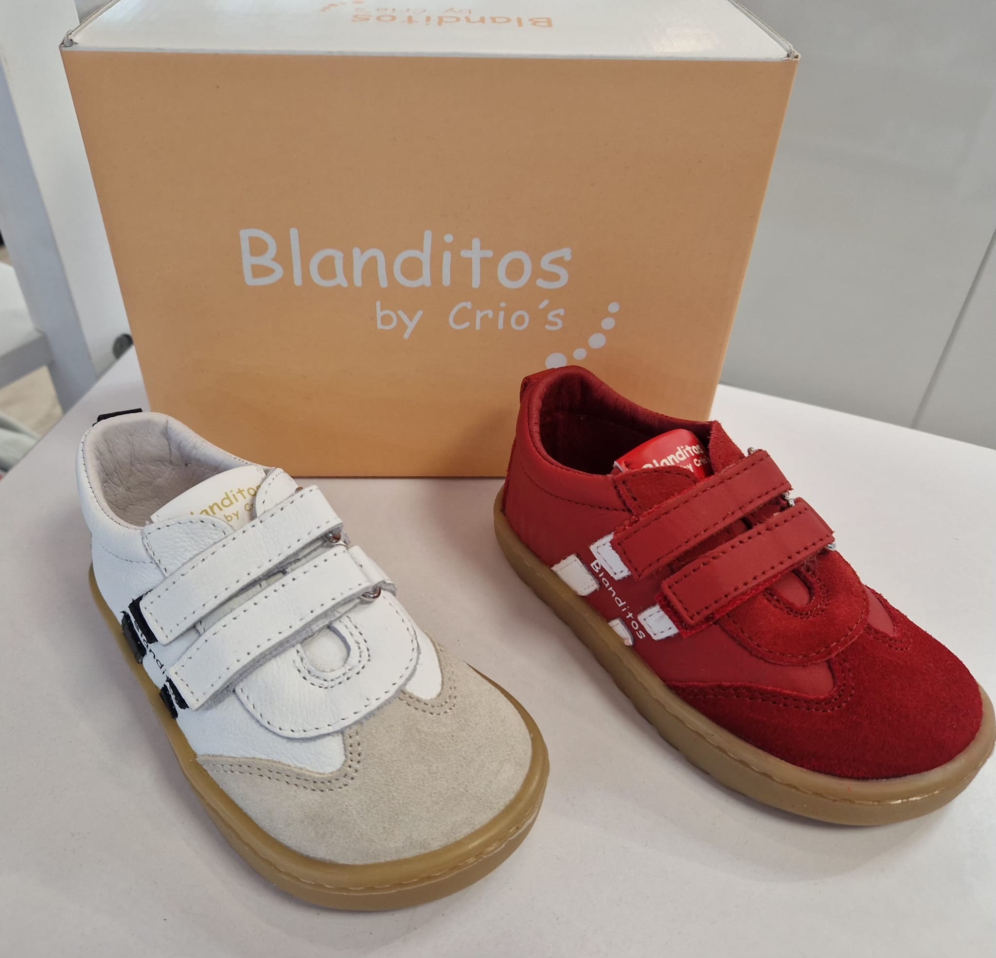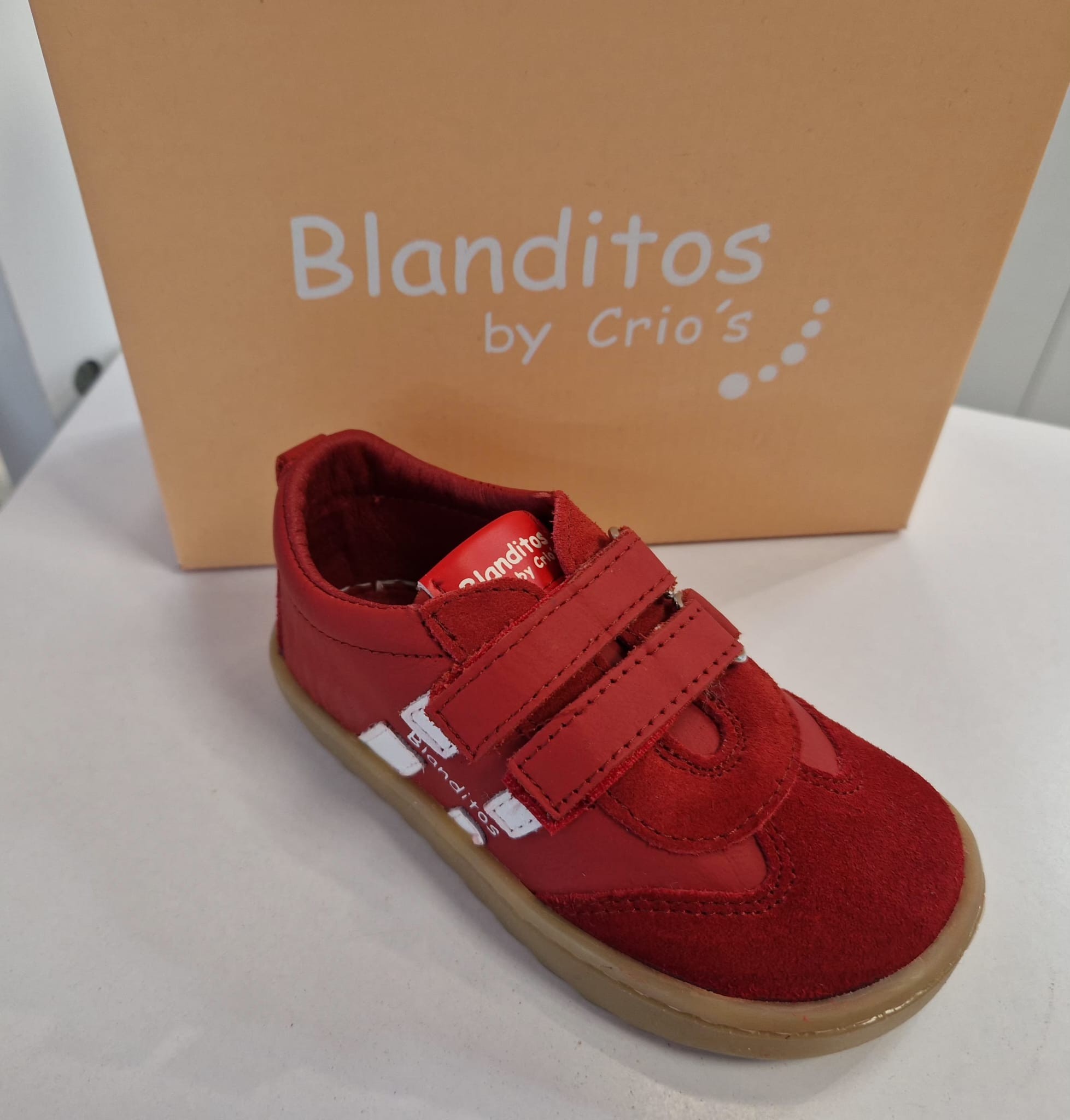 La línea Blanditos by Crio’s, zapato respetuoso  está fabricada en piel 100% natural de primera calidad, lo que le confiere una suavidad extra . Cierre de velcro para un gran ajuste, además de facilitar la autonomía de los más pequeños. No tienen contrafuertes ni refuerzos, son muy flexibles. Además, tienen plantilla extraíble totalmente plana (sin elementos anatómicos).