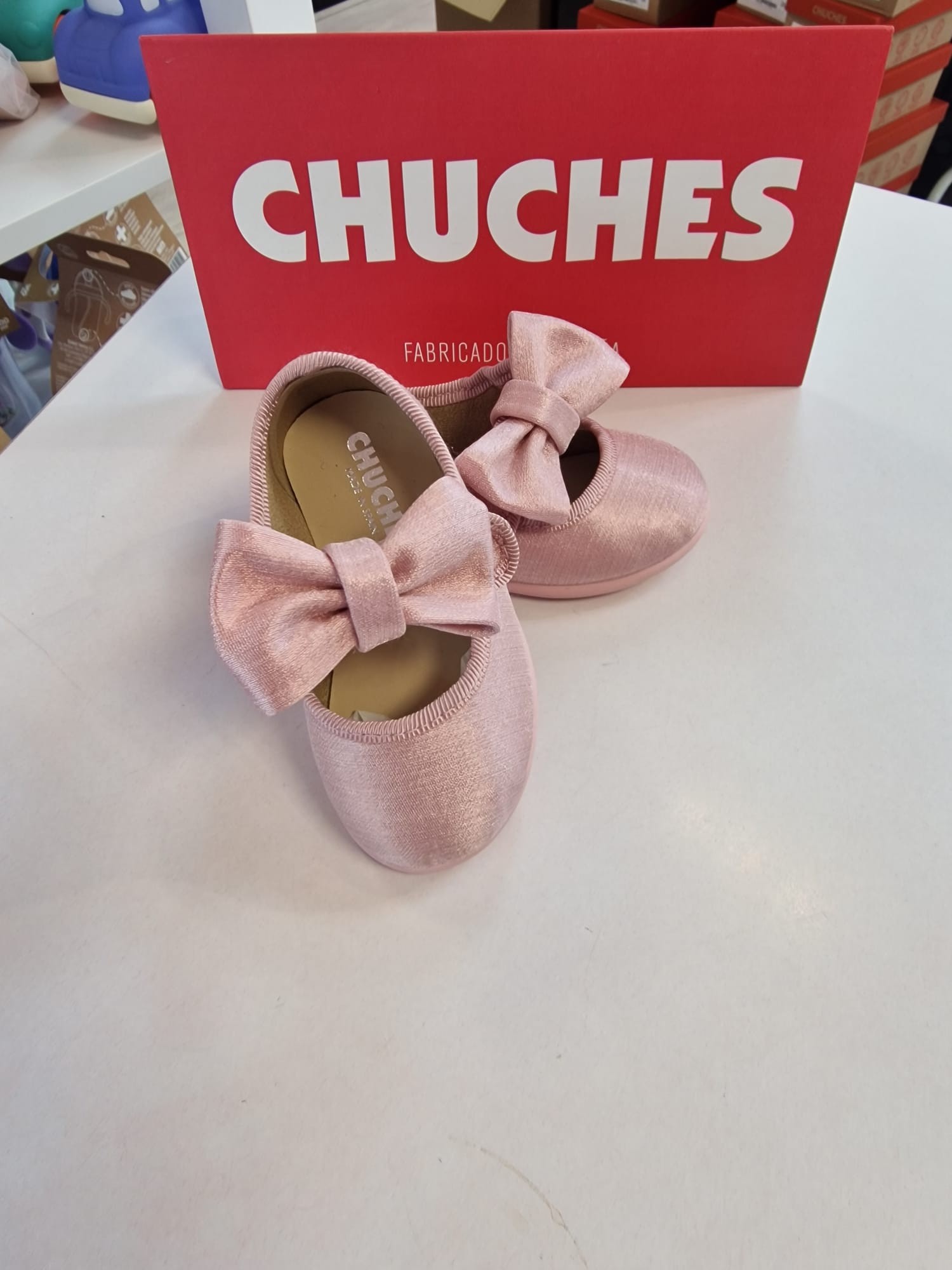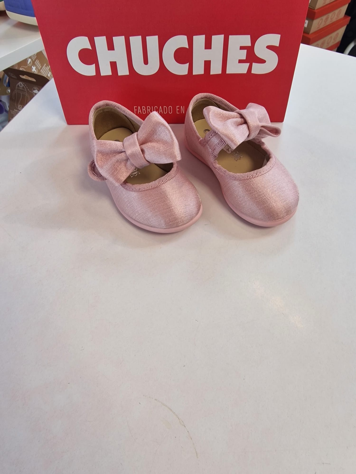 Mercedita de lino con detalle brillo en color rosa de la marca Chuches .