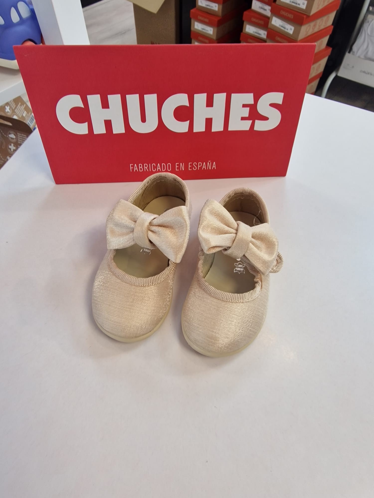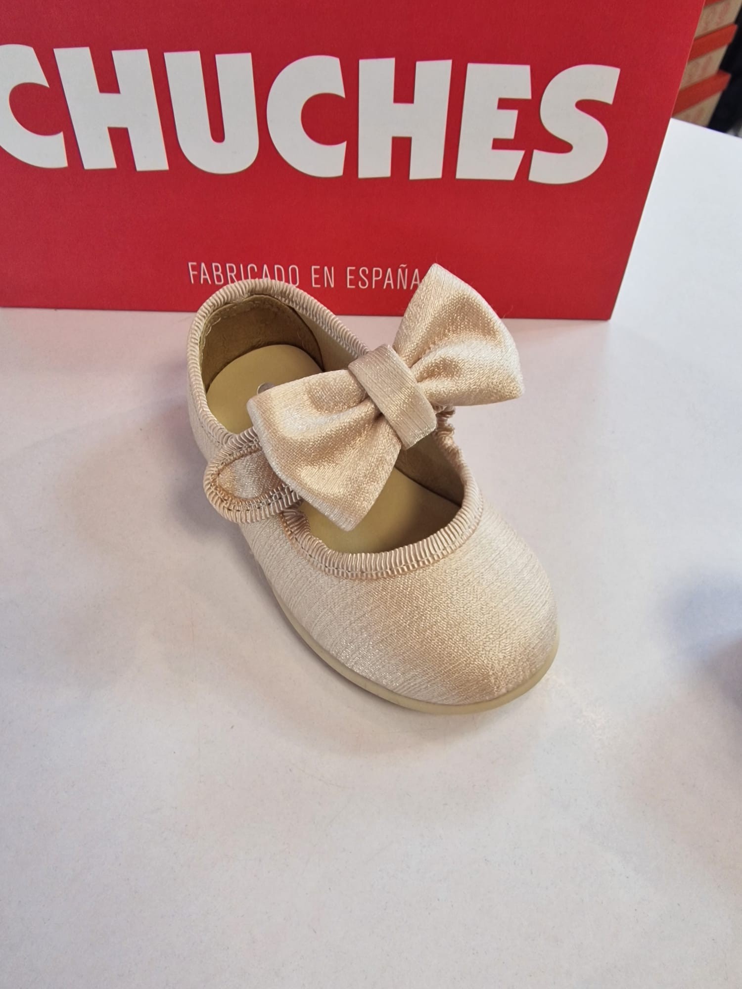 Mercedita de lino con detalle brillo en color beige de la marca Chuches .