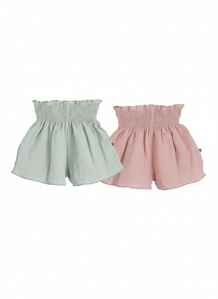El pantalón corto de la familia Alborán es una prenda cómoda, fresca y muy versátil, pensada para acompañar a las peques durante todo el verano. Está confeccionado en muselina suave y ligera, perfecta para los días de calor por su transpirabilidad y tacto agradable.