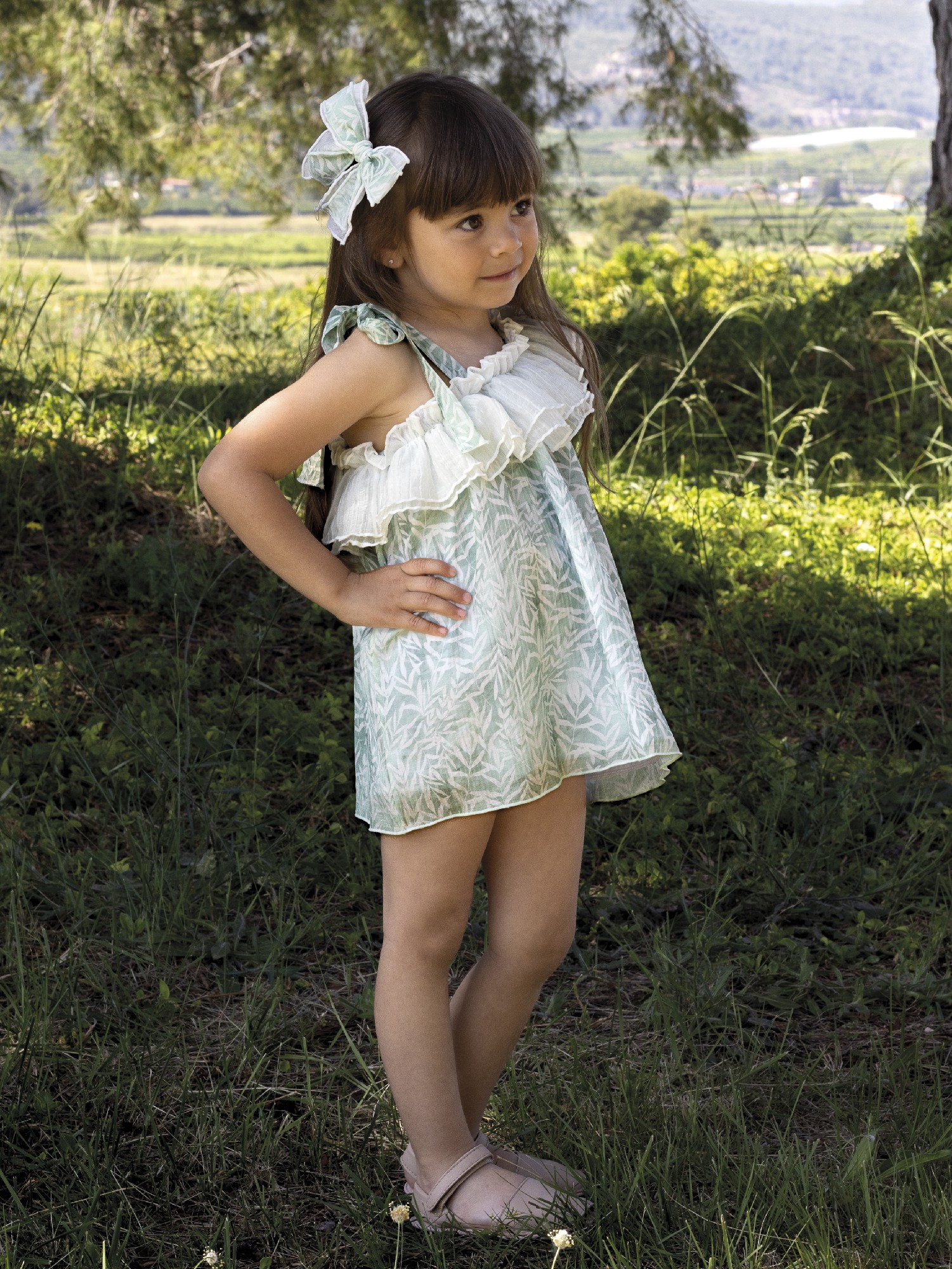 Esta confeccionada en una delicada organza estampada en un suave tono verde menta ( mint)