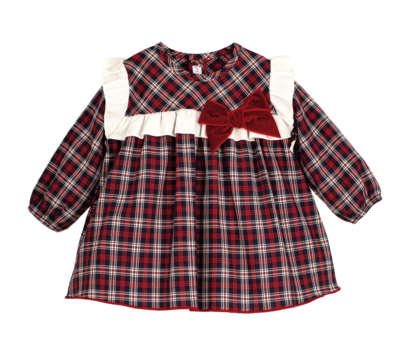 Vestido de Navidad de la colección Monzón de Calamaro, confeccionado 100% en algodón suave y natural, perfecto para las pieles delicadas de las niñas.